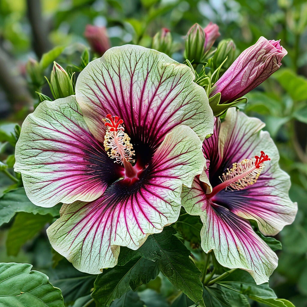 - Размер цветка: цветки гибискуса “Иден Бьюти” крупные, достигают 15-20 см в диаметре, что делает их ещё более заметными и эффектными.